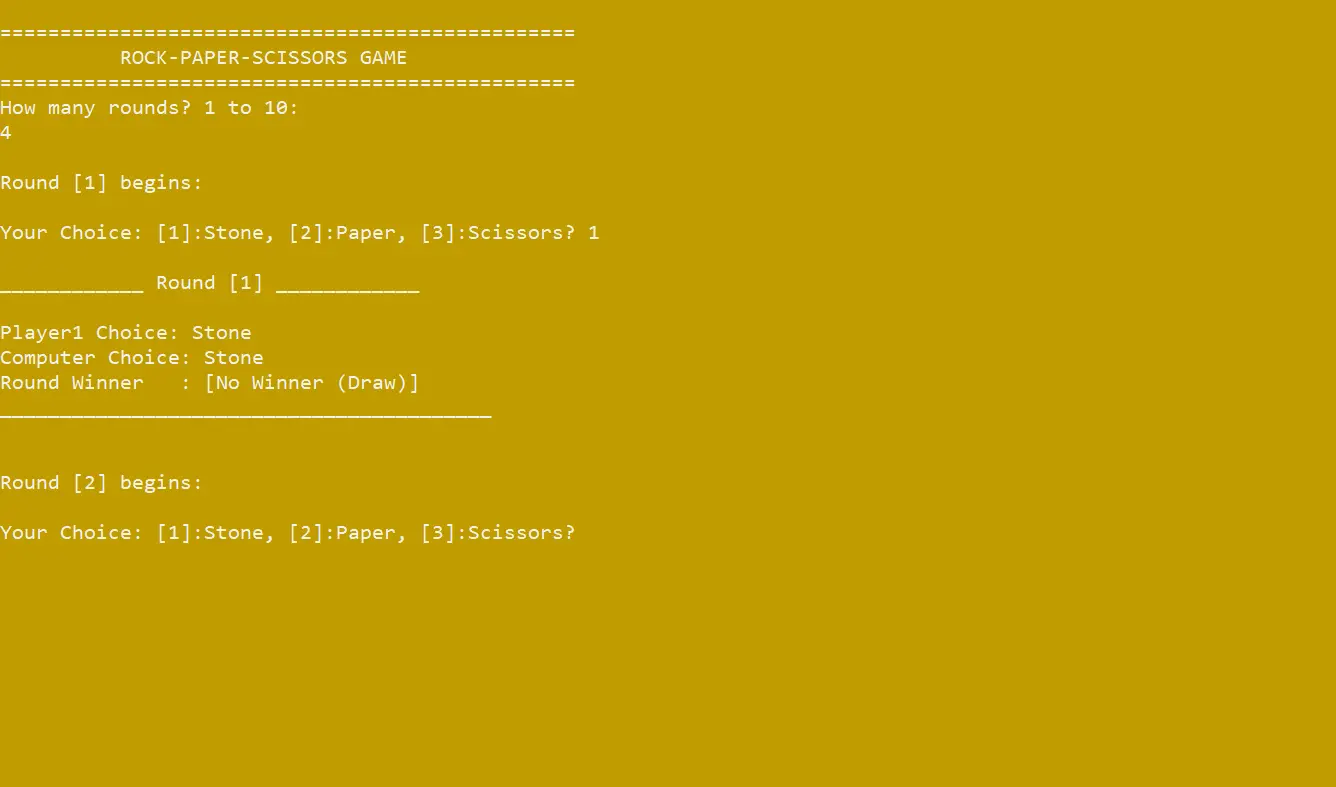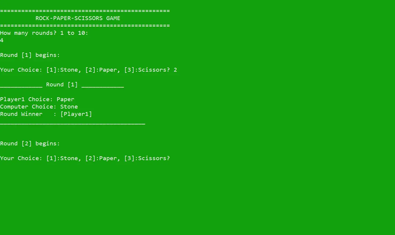 The Rock-Paper-Scissors Game is a C++ console project built to demonstrate logic, randomness, and user interaction. It uses enums, structs, and clean function design to create a full playable experience.